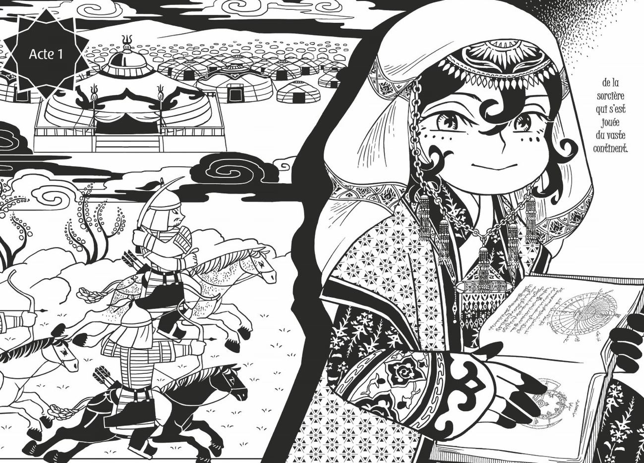 Ce ne sont certes pas les mangas historiques qui manquent, mais ceux prenant place en Asie centrale ne sont pas si nombreux. Et si on ajoute à l’équation que l’on se situe à l’époque de Gengis Khan et que l’on suit le destin d’une femme, bien réelle mais méconnue, de culture musulmane de surcroît… Vous l’aurez compris, Jaadugar est une perle rare dans le paysage manga.
